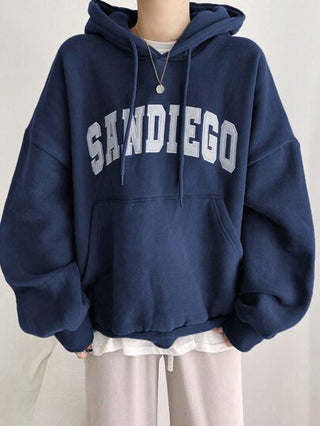 DAZY هوديز بطباعة حرف أنثوية كاجوال بأكمام طويلة سترخاء الكتف، الخريف والشتاء