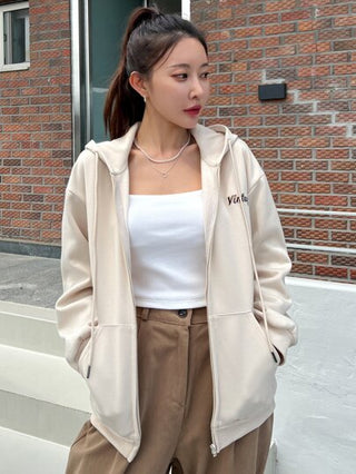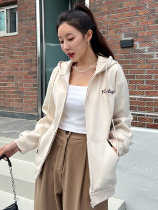 DAZY هودي حراري بسحاب ورباط وتصميم جرافيك بحروف متساقطة وكتف منخفض