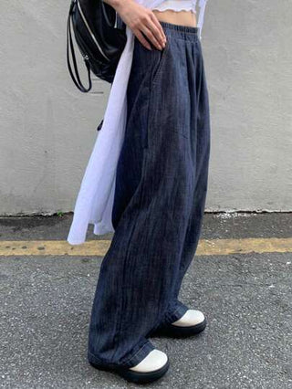 DAZY بنطال جينز نسائي ذو قصة واسعة ورخوة في الخصر مع خصر مطاطي، مناسب لجميع المواسم