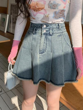 DAZY تنورة جينز نسائية قصيرة بتسريحات من نوع A للصيف