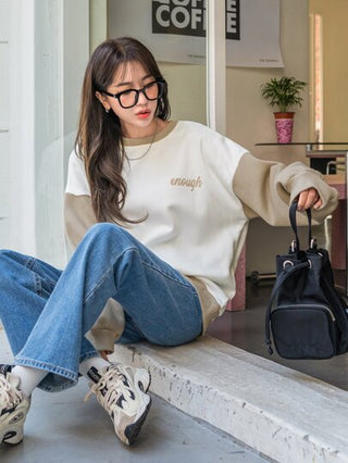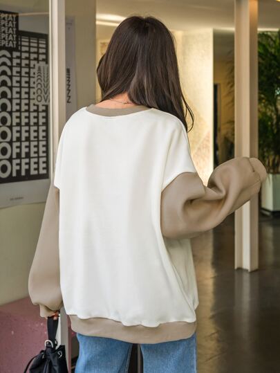 DAZY سترة بلوك لوني بطباعة أحرف، كتف ساقط، قطع سترة علوية بأكمام طويلة