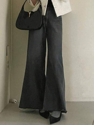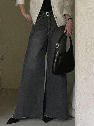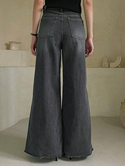 DAZY سروال جينز نسائي واسع الساق طويل مغسول بلون أساسي
