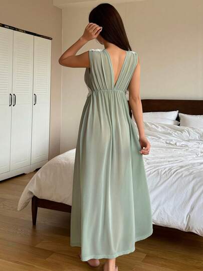 DAZY فستان نوم بشريط من الدانتيل وشبكة شفافة مع ربطة أمامية للنساء