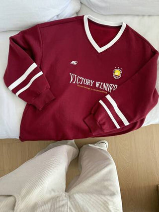 DAZY 1 قطعة بلوفر راسم سترة رياضية فضفاضة بياقة على شكل حرف V من القطن المبطن