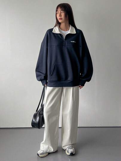 Dazy-Less بلوزة نسائية بقصة سويت شيرت برقعة ملونة مطرزة بالحروف، أكمام طويلة