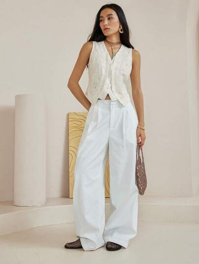 Dazy-Less قميص بلوزة كتان أنيق أكمام بدون أكمام رسمي عطلة عادي صيفي ذو تفاصيل مكشكشة