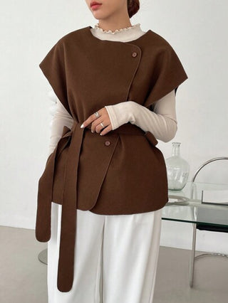 Dazy-Less معطف كاجوال بلون واحد ، خريف/شتاء ، معطف نسائي كاجوال مربوط بحزام في الخريف/الربيع، أكمام خفاش، ياقة مستديرة، فضفاض بلون بني سادة للنساء، لارتداء اليومي الكاجوال