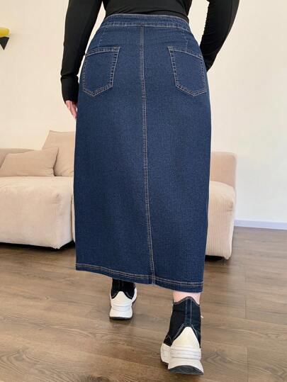 Dazy Plus تنورة جينز خط A متوسطة الطول مناسبة للجميع بجيوب للسيدات البدينات