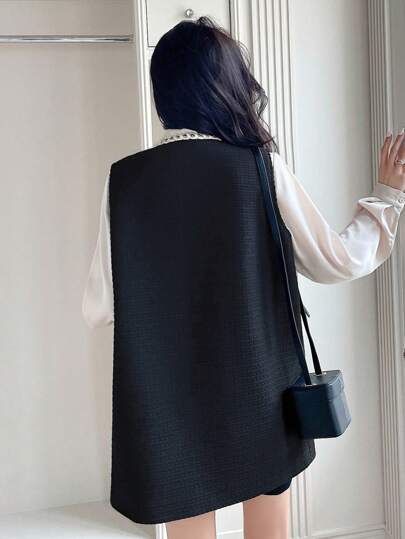 Dazy Star جاكيت كاجوال للأعمال من النساء بدون أكمام مُحبكة مع رقعة الحزام