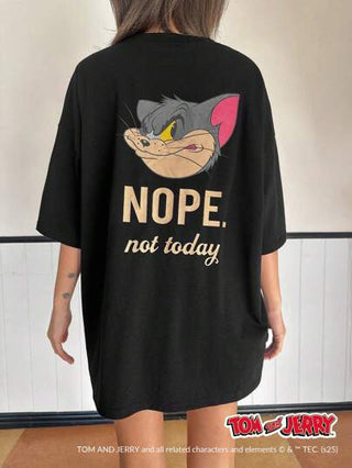 DAZY TOM AND JERRY X DAZY بلوزة نسائية كاجوال واسعة بياقة دائرية مطبوع عليها رسم حرفي، بلوزة كيوت مقاس كبير