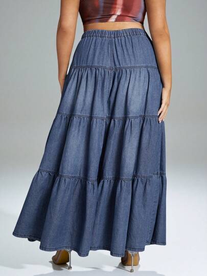 Denimoi تنورة جينز بتنميق مُشبّك الهامش لحفلات الكونترى المنشورة بطبقات إضافية