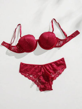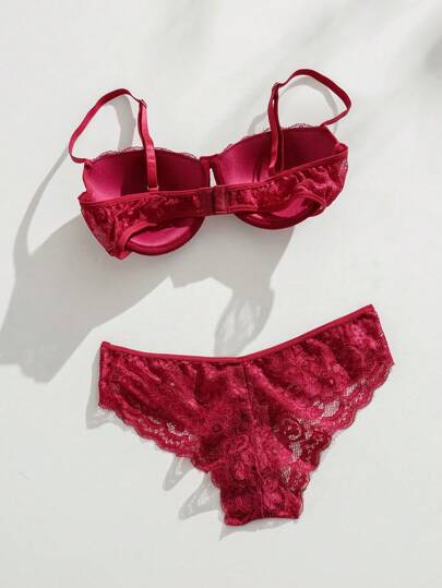 DesireSculpt مجموعة لانجري مكونة من صدرية دانتيل مع أسلاك داخلية وملابس داخلية G-سلسلة للنساء
