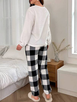 Dream Adore سترة بندا للنساء مصممة بالتطريز على الكتف مع بيجامة سفلية بطبعة خطوط البوفالو