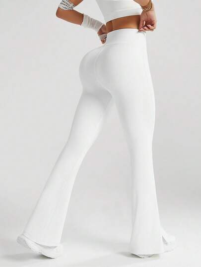 Easify Sport بناطيل نسائية رياضية ذات خصر عالي لون واحد مُشقوقة الحافة جرس