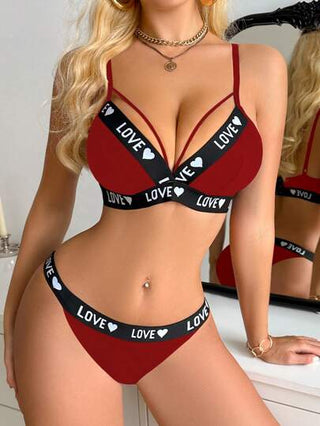 EasyFave طقم سترة داخلية مضفرة بطباعة حرف قلب متناقض للسيدات