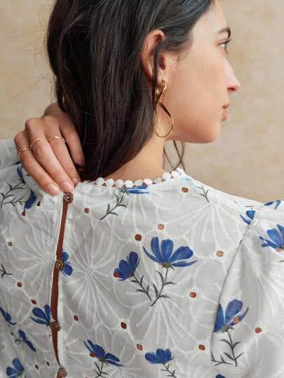 Écloséra بلوزة نسائية بياقة على شكل حرف V وبدون أكمام، طباعة زهور مطرزة، بيضاء، طراز فينتاج فضفاض، للربيع والصيف