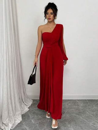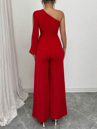 Elenzga الوثبة الأنيقة للنساء ذات اللون الأحادي مع أكمام غير متماثلة وساق واسعة