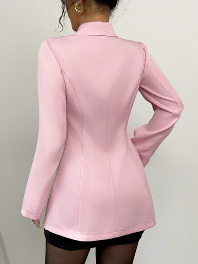 Elenzga بدلة جاكيت وردي مزخرف بالزهور ثلاثية الأبعاد ذات أزرار مزدوجة للنساء، مناسب لعيد الحب الرومانسي