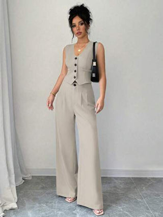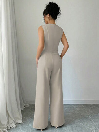 Elenzga بدلة كاجوال بسيطة بأكمام بلا أكمام والبنطلون طقم