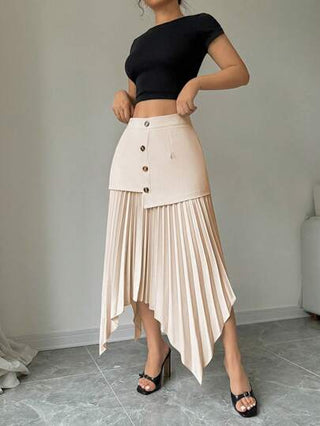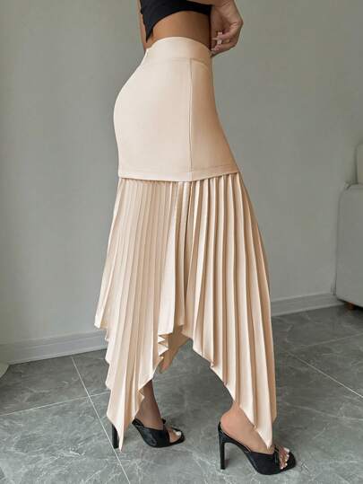 Elenzga تنورة أنيقة ذات طية مذيلة غير متماثلة ولون واحد للنساء