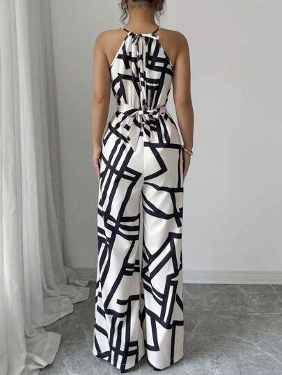 Elenzga جمبسوت طويلة على شكل بدلة مطبوعة أنيقة مناسبة للأعياد والاستخدام اليومي