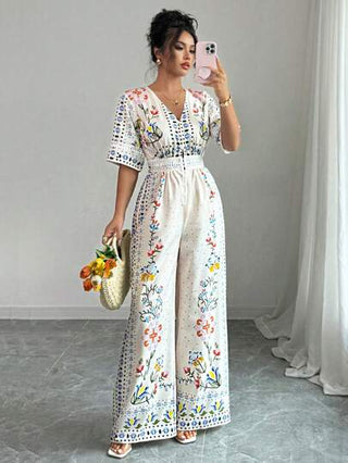 Elenzga رومبير فرنسي فاخر فضفاض بطراز فينتاج ذو رقبة على شكل حرف V للنساء، مناسب للعطلات/البوهيمي/الزهور الرومانسية/ارتداء العطلات