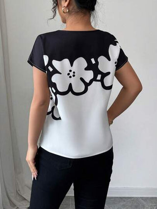 Elenzga قميص نسائي أنيق متناقض مع طباعة زهرية للتنقل