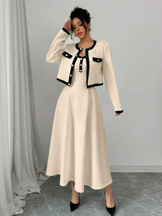 Elenzga مجموعة أنيقة من قطعتين للنساء مع تلوين تباينات اللون وتصميم مزود بأزرار