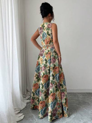 Elenzga مجموعة من جزأين للمرأة: توب بردة مفتوحة الأمام+تنورة مطرزة متعددة الألوان