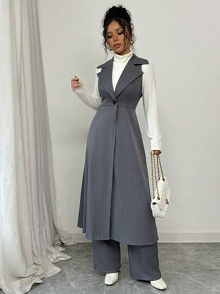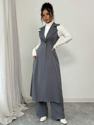 Elenzga مجموعة من قطعتين: كارديجان أنيق بياقة واقفة بدون أكمام وخصر مضيق وبنطال طويل على شكل حرف A
