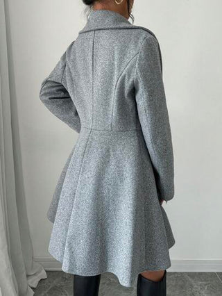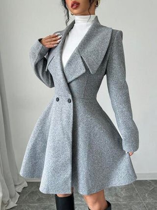 Elenzga معطف فوقي أنيق للنساء باللون الأحادي ذو ياقة وقفز طويلة بأزرار مزدوجة، للخريف/الشتاء، ياقة شال فضفاضة بأكمام منتظمة من نسيج الشَّبك الرمادي الأنيق للارتداء اليومي العادي