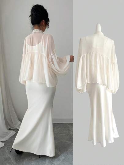 Elenzga 2 قطعة غطاء إطلالة نسائية حديثة بطراز صيني من الشيفون - وشاح بياقة عمودية وقائي من الشمس وخفيف الوزن، مناسب للصيف والتنانير