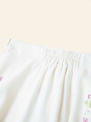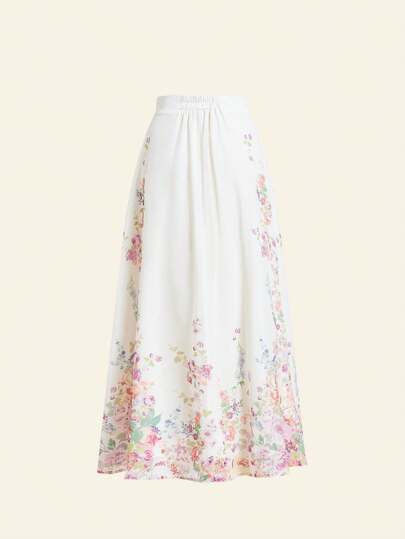 Ellevyn تنورة كاجوال مطاطية الخصر ذات طباعة نباتية للنساء، مناسبة للعطلات