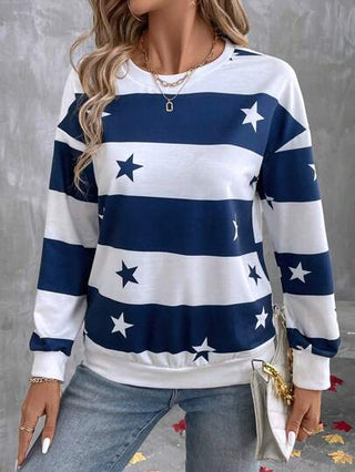EMERY ROSE بلوزة رياضية نسائية بأكمام طويلة، مطبوع عليها نجوم بشكل كامل، رقبة طاقم، للارتداء اليومي العادي، ملابس علوية بأكمام طويلة