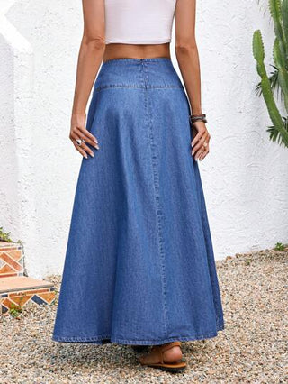 EMERY ROSE تنورة جينز للنساء طويلة فضفاضة عطلة يومية، تنورة طويلة أزرق بيجة فيونكة، ملابس عطلة يومية كاجوال للربيع والصيف، ملابس غربية للنساء، تنورة حفل موسمي ذات طراز بوهيمي وكاوبوي وبوهو