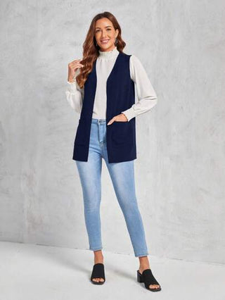 EMERY ROSE جاكيت خفيفة الوزن بدون أكمام موحد اللون للنساء