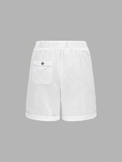 EMERY ROSE سروال بأربطة وجيوب بلون سادة، لباس صيفي عارض