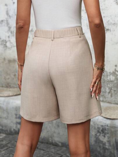 EMERY ROSE سروال قصير عادي للنساء ذو ساق واسعة مقلم بطريقة الأسنان