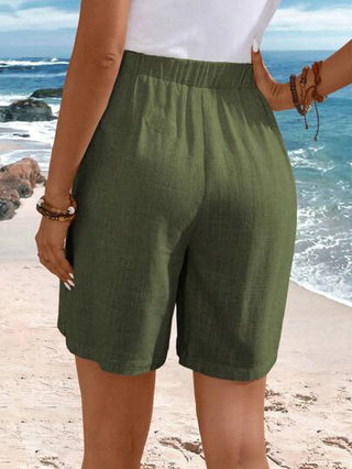 EMERY ROSE سروال نسائي صيفي عارض بأزرار بأسلوب الريف من الكتان
