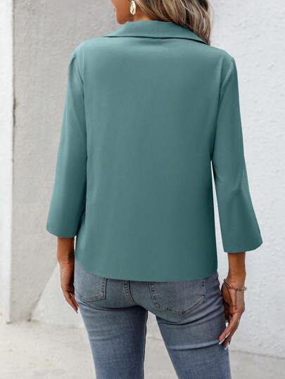 EMERY ROSE قميص نسائي بأكمام قابلة للطي، ذو ياقة رقبة وأزرار أماميةعاديّ بلون واحد