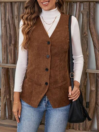 EMERY ROSE من واحد لون أساسي بدون أكمام جيب أمامي أزرار كاجوال ملابس علوية التانك للاستخدام اليومي للنساء
