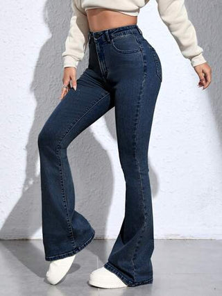 Essnce بنطال جينز كاجوال بتصميم بسيط وجيوب متعددة، وأزرار أمامية