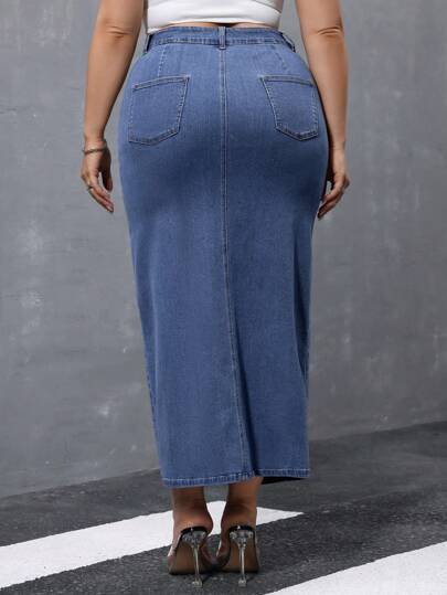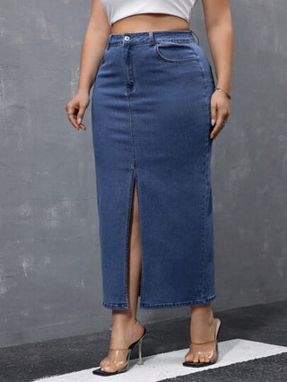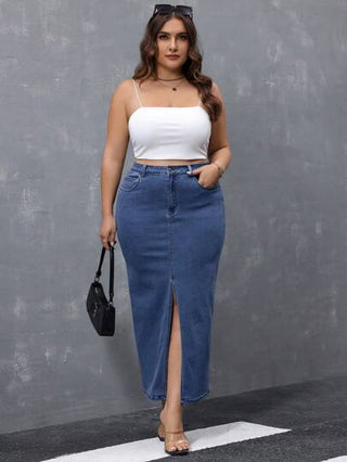 Essnce تنورة جينز كاجوال قصيرة بشق أمامي لمقاسات كبيرة للربيع والصيف
