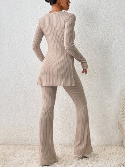 Essnce تي شيرت بحافة شق و بنطلون بساق واسع