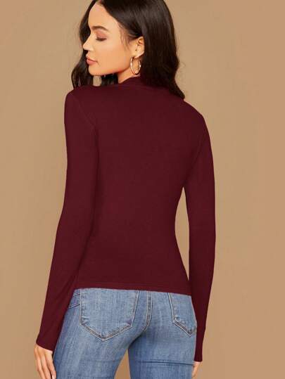 Essnce تي شيرت نسائي أنيق للمكتب بياقة عالية وأكمام طويلة وقصة ضيقة ولون سادة