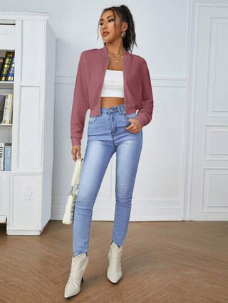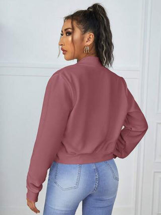 Essnce جاكيت بسحاب بياقة بيسبول وأكمام طويلة بلون صافٍ