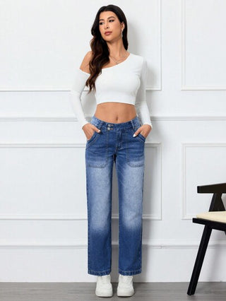 Essnce جينز نسائي مستقيم فضفاض متعدد الاستخدامات كاجوال
