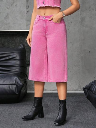 Essnce جينز واسع الساق فضفاض بفتحات وجيوب للنساء
