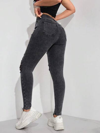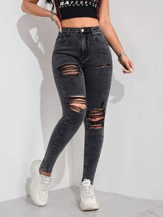 Essnce سراويل جينز ضيقة ممزقة بلون صلب لنساء، مناسبة للصيف والارتداء اليومي