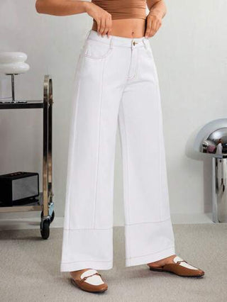 Essnce سراويل جينز نسائية عريضة الساق مصنوعة من قماش كاجوال مع خطوط الحياكة المتباينة